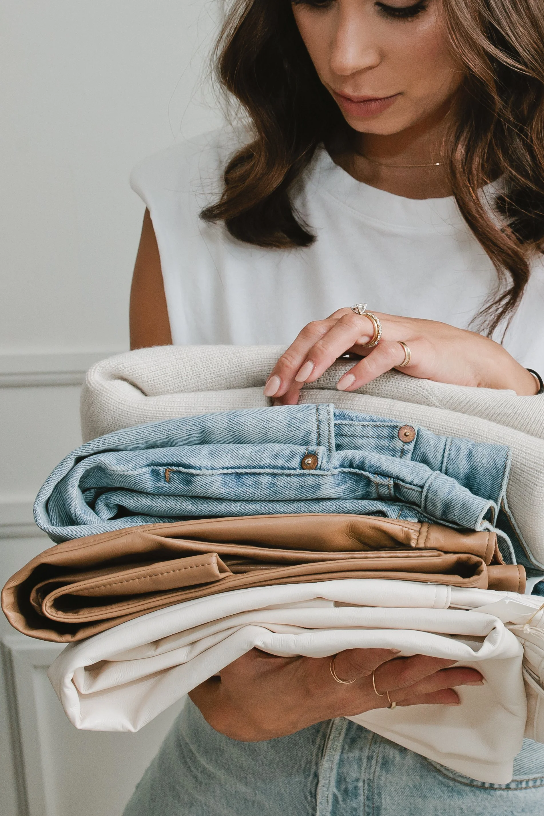 First, we’ll assess your current wardrobe- what we can keep, toss & donate. Next, we’ll work with you to understand your needs based on your lifestyle and ideal style. After we review your closet we’ll identify any gaps and create personalized outfit boards. We can go shopping together or you can purchase the pieces virtually. Lastly, a final touchpoint try-on session where you learn how to create outfits with your existing wardrobe and new purchases.